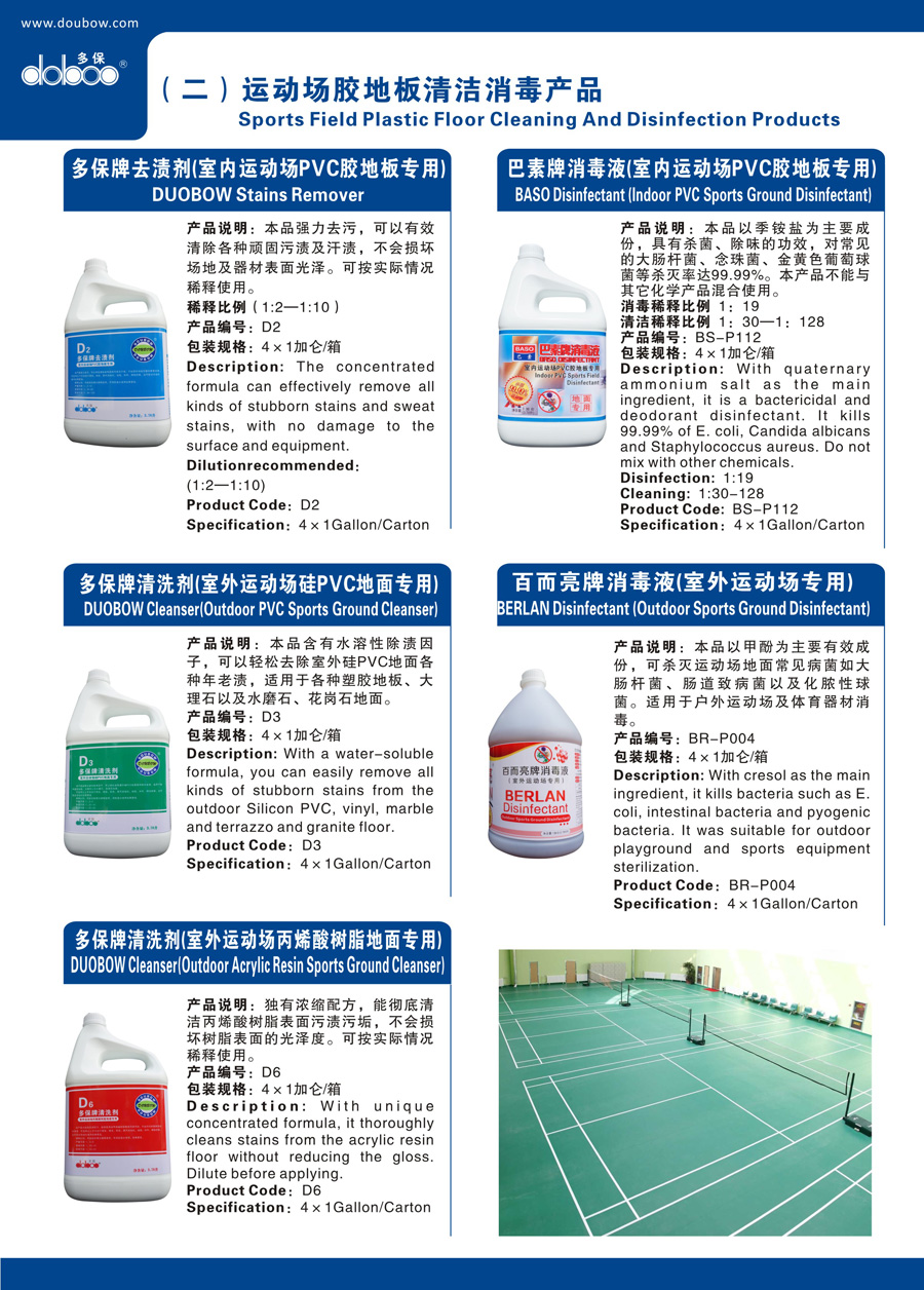 多保_运动场胶地板清洁消毒产品